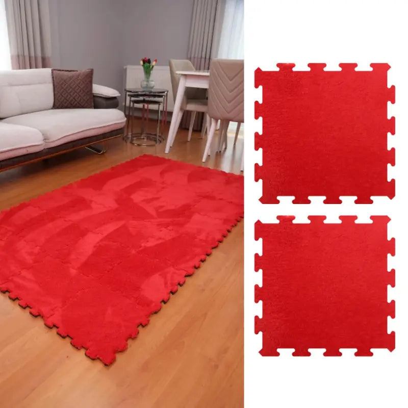 Kırmızı Peluş Yıkanabilir Kaymaz Yapboz-Puzzle