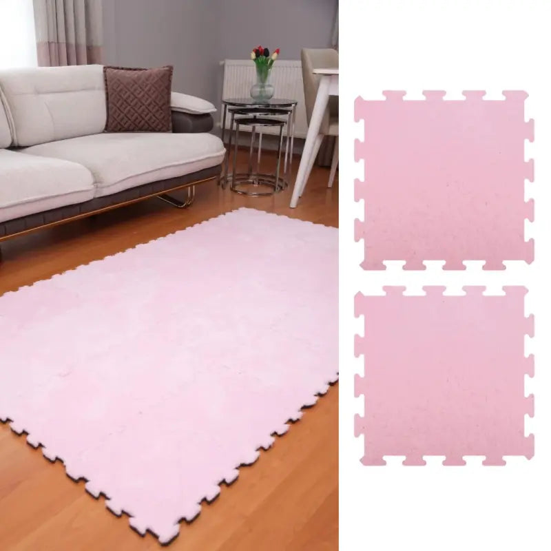Pembe Peluş Yıkanabilir Kaymaz Yapboz-Puzzle